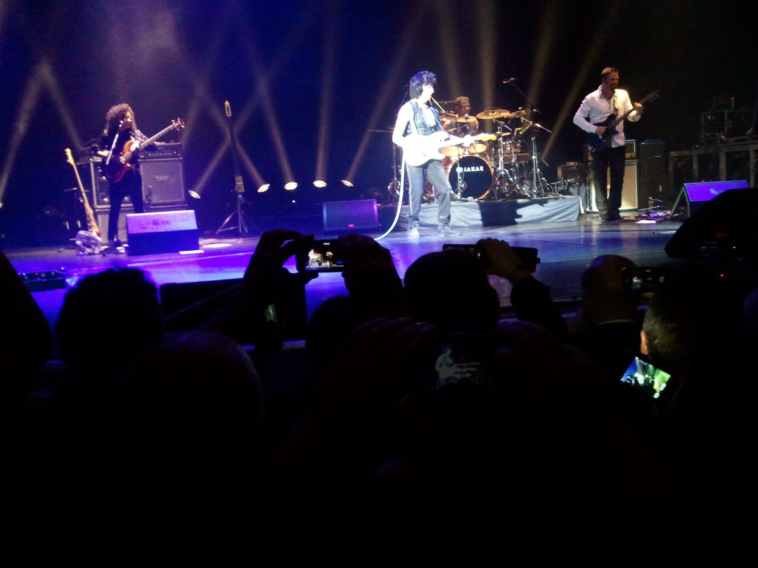 Then the big boy comes on. A brilliant band playing really powerfully. Jeff plays some of his new stuff, as well some older parts of his catalogue. Great covers of early Mahavishnu and Billy Cobham stuff. Extraordinary to witness Jeff at around 15-20 ft away. He was really pulling some great guitar sounds. The evening just keeps on getting better and better. All of a sudden, its over. Jeff does 2 encores and I start to head outside. I arrange with the woman sitting next to me to email me her photos, as my iphone camera struggled with the lights. After hangin for a bit I catch up with Jeff’s tech. I get some contact details for my mate in Melb. Well done. Autograph? More hangin. I end up talking to 2 delightful young french girls. Very convivial. I point out to one of them Jeff’s manager. She goes straight over to him with her copy of the set list saying take me to Jeff. He bloody well does. She comes out with a photo of Jeff drapped around her like a summer scarf and her set list signed. I wait a little longer. Jeff appears but straight into the bus. Boom. All over. I make my way back to our hotel, after taking a few nervous detours. End of the day.