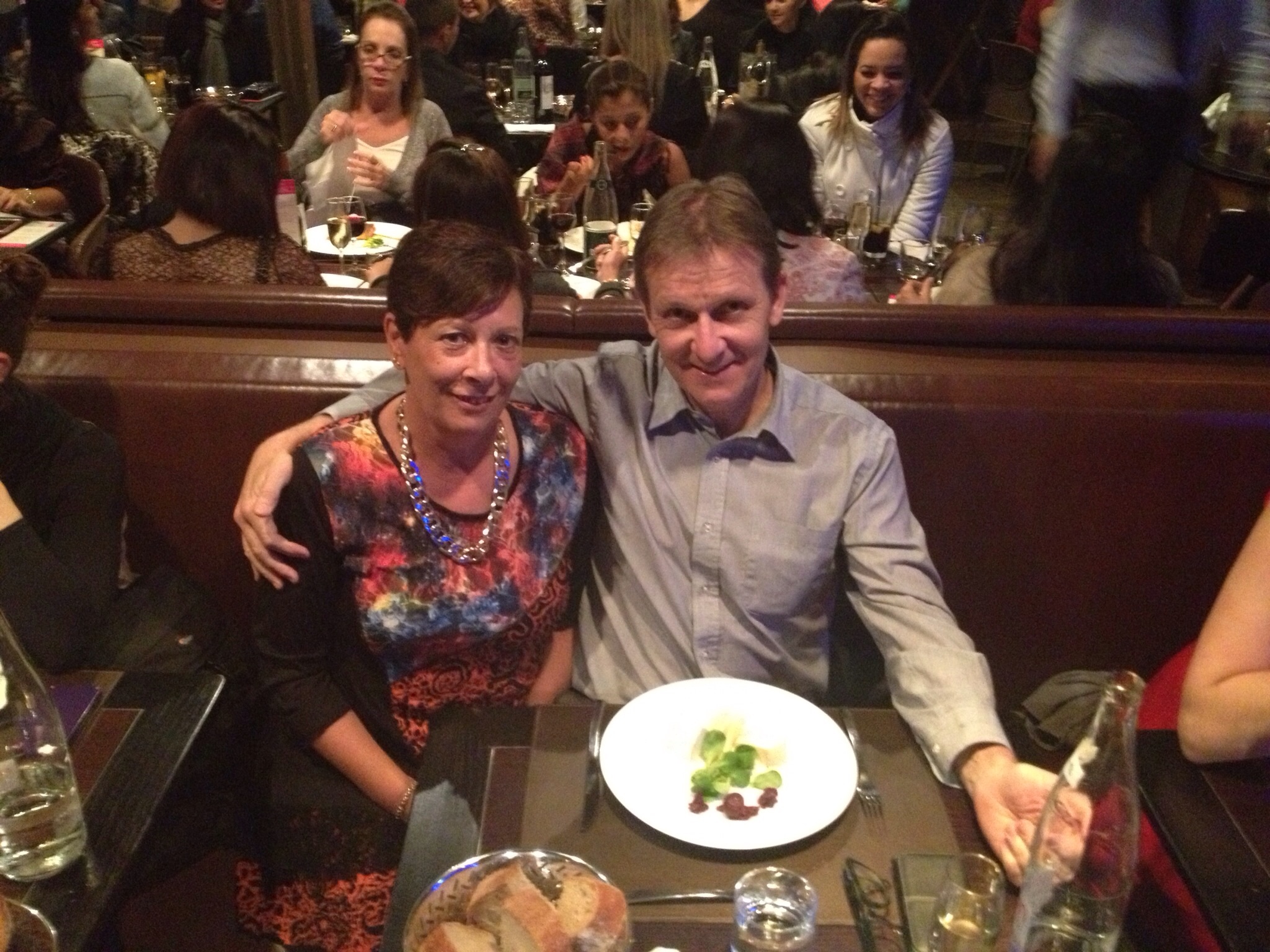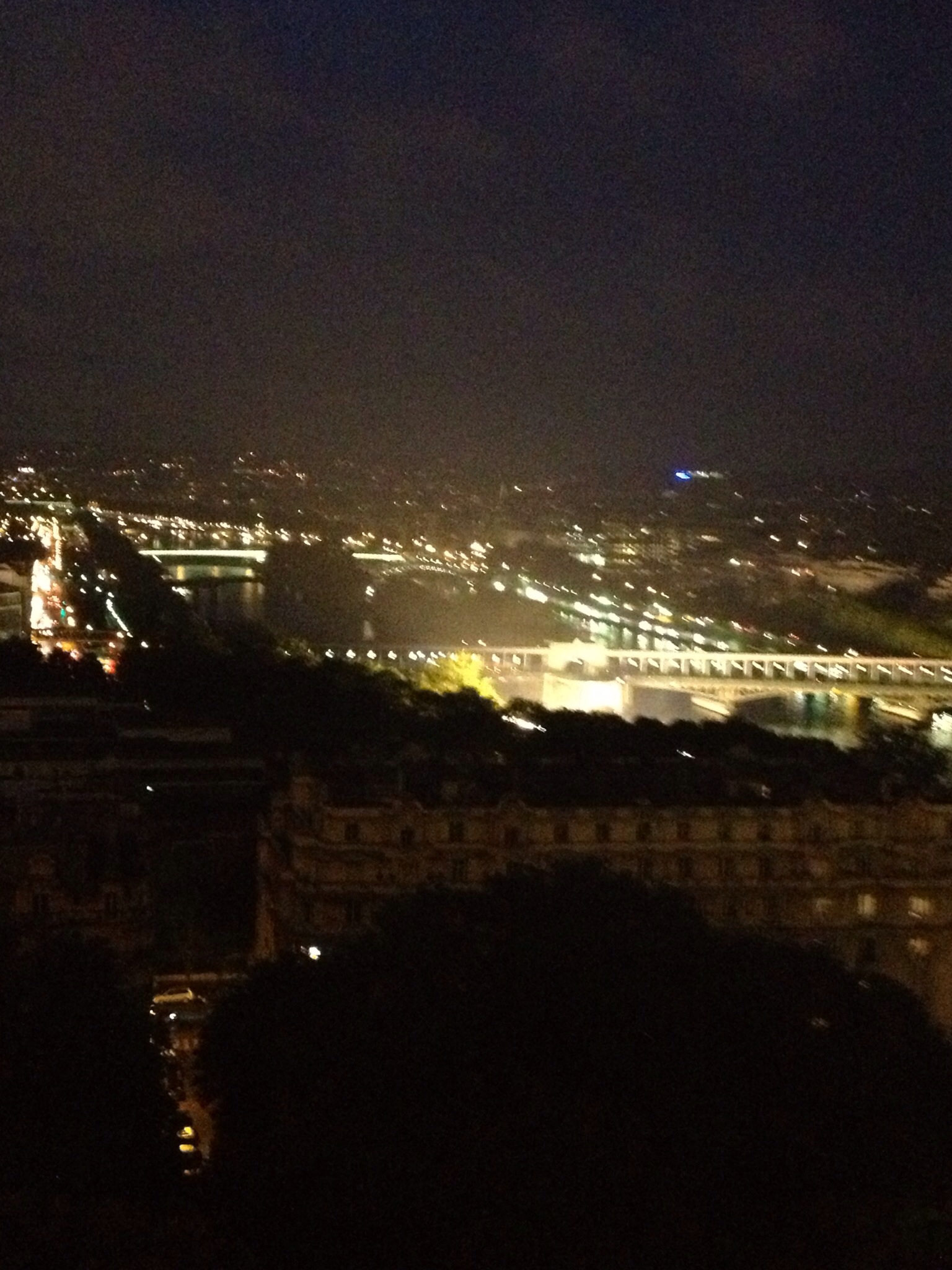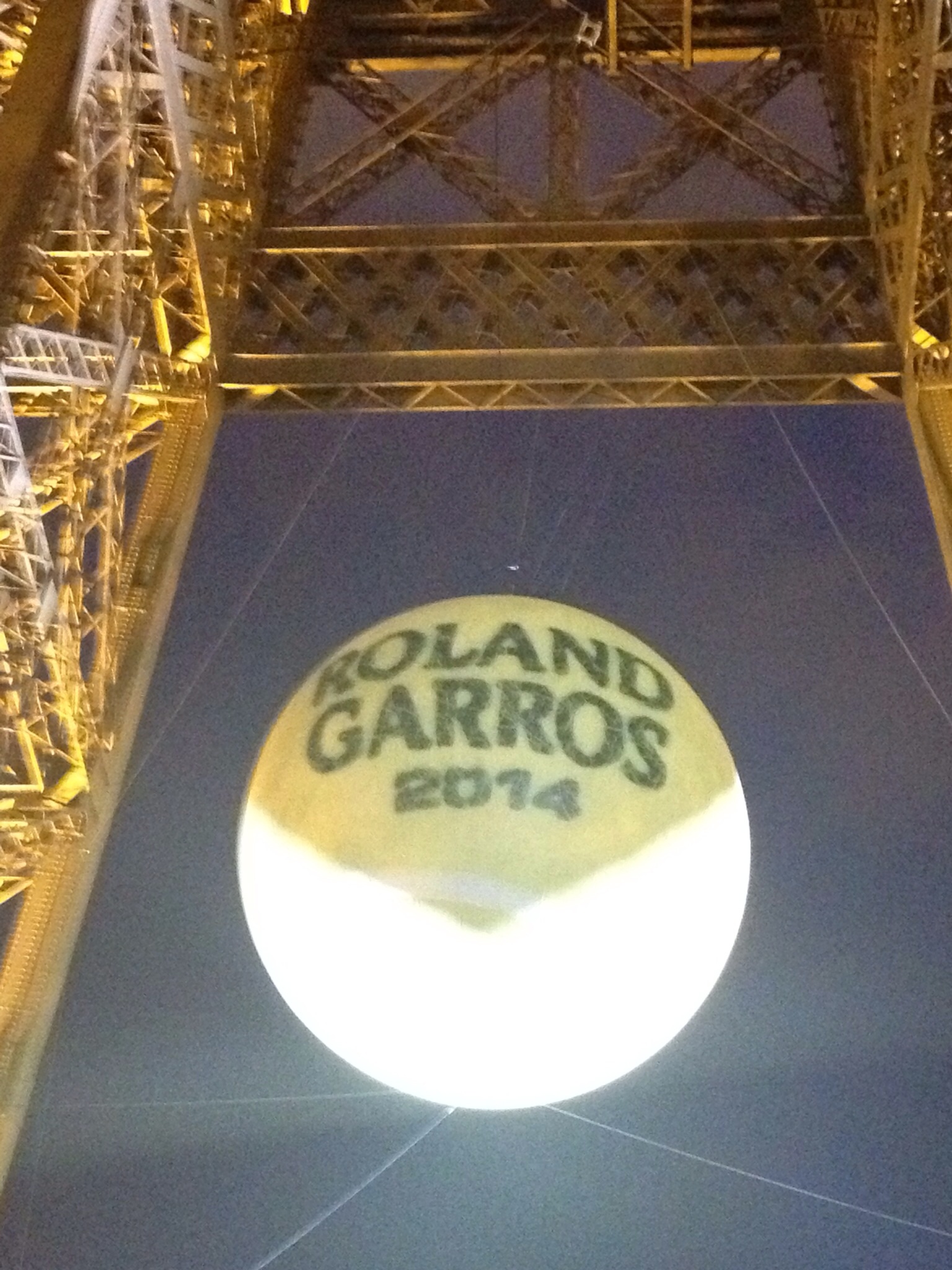 Back to the hotel. Scrub up for dinner at the Eiffel Tower. We order a taxi. The driver is a classic. West Indian? Blah, blah , blah is how he describes politics in France. Very funny guy. We get to the Tower and, mon dieu, what a sight. We were both blown away by the scale of the thing. Very wary of pick pockets. Signs everywhere about this. Keep ur wallet secured dude……….or something. Nerve racking. We get into the lift and up we go to the first level. We wait to be called up some stairs to the restaurant. Up we go. The view from our spot is extraordinary. A glass of champagne is supplied, with some Evian. Meal wise we go for Smoked Salmon and filleted Chicken. I opt for the cheeses and Sue opts for the moose. Great atmosphere. Great views particularly with the lights on. We head back down in the lift both shaking our heads and notice the giant Roland Garos tennis ball suspended within the Tower. Evening over. Back to our digs at the Arts Metiers precinct.