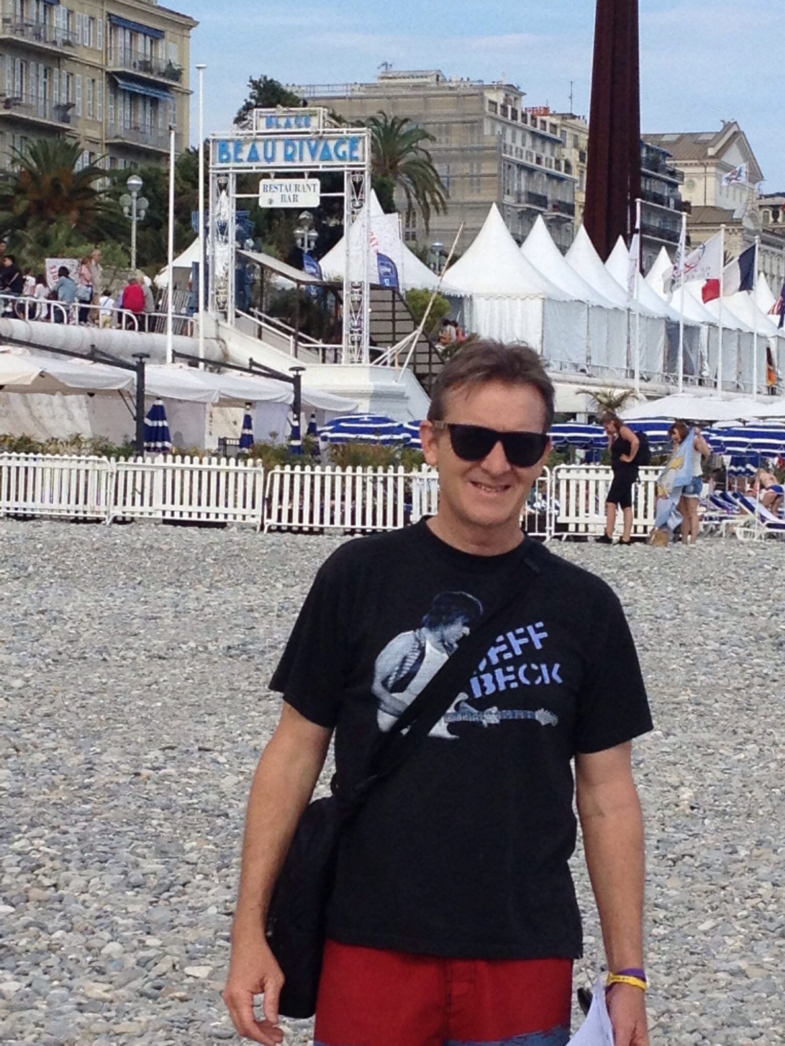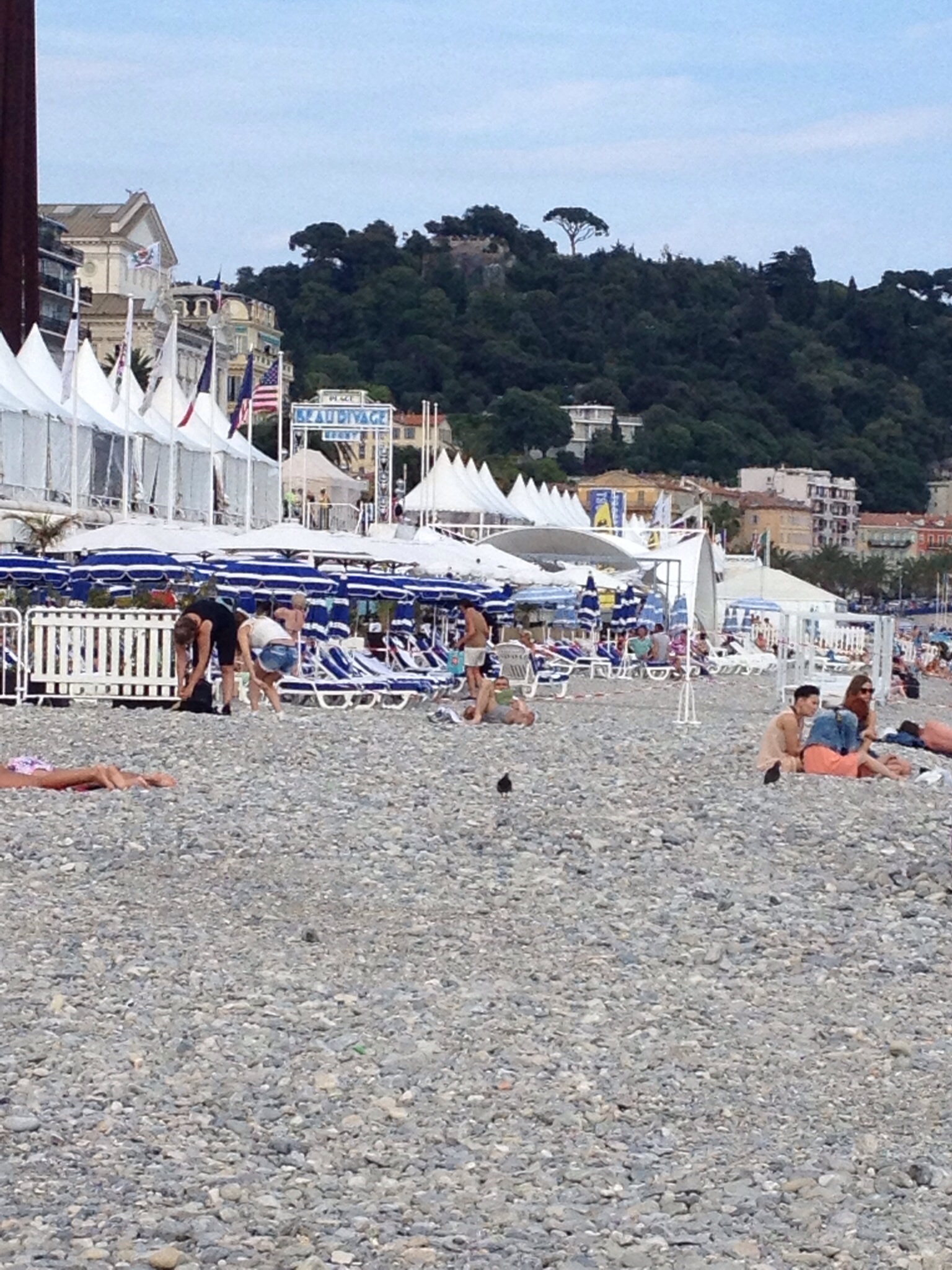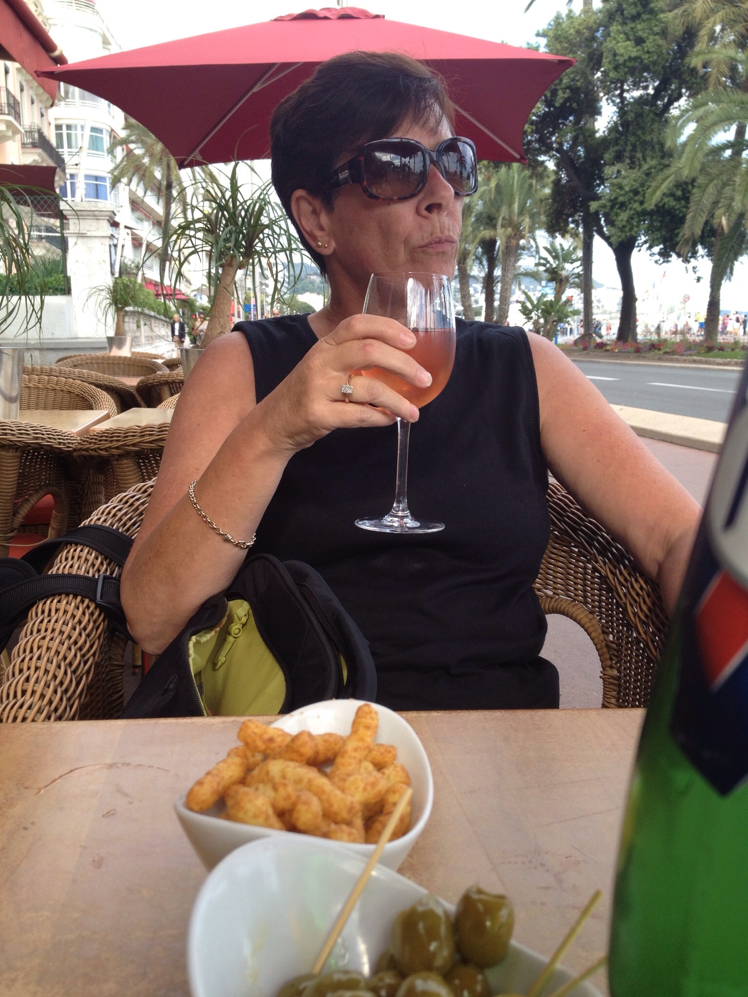 No euro breakfast this morning, as we have booked a taxi for 7am to take us to Lyon to catch a bullet train. Sounds a bit Steve McQueenish. Sad to leave Paris. Would love to gone to Duke Lombard’s jazz club on Sebastopol and maybe a Picasso museum, but alas, not to be. Anyway, up at the station we just walk in. Our train is in Hall 1, the level we walked into the station on, this is good. Train departing at 8:49am. We are way too early, but comfortable and organised. Watch the screens to pick out our train aisle. Then we’re off, carriage 1 seats 53 and 54. Now exactly where is carriage 1? Upon finding our carriage its a bit of a bunfight stowing the luggage because some people will be getting off earlier than us, but it all works out. The train takes its time but we are soon sitting on 200k plus. At one point I noticed we were sitting on 294k. Pretty impressive. Why don’t we have one of these doing Melbourne to Sydney? I just don’t think we get infrastructure in Australia. Its almost like the nation is constipated when it comes to big thinking, big ideas and big implementation. The French seem to have found a way. Was wondering about the fact that no-one had checked our tickets, when along comes this rather dishevelled looking dude with an electronic device. All very low key. Present your tickets. Our trip from Lyon to Nice, takes 5.5 hours. Nice one. Navigating our way to our hotel proves to be a little trickier. As I scoot off to check a few street signs, a woman approaches me, ……ah some assistance with directions. Iam then asked whether I’m right for a woman tonight. “What?” I ask. Weird man. Is this a joke? Check into the hotel, and then walk along the beach promenade. Stop for drinkie winkies at one of the multiple street drinkie winkie stations, and then back to HQ for a serve yourself type of meal. Back in our room I discover that I can’t get BBC World. Not good. Day over.