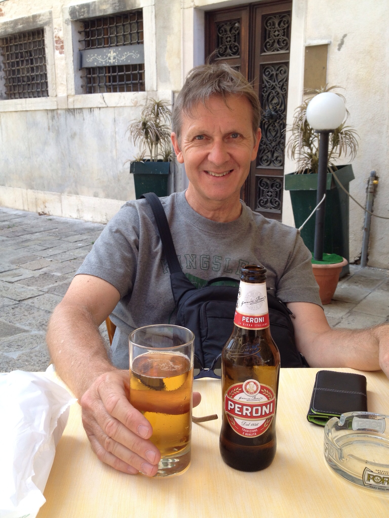 A nice breakfast and out we go. Great to have these breakfasts built into our accommodation. Time to hit St Marks Square and buzz around here for a while. What a sensory overload. People, pigeons, couples getting married, music, coffee, massive queues to get into the Basilica, you name it. Admittedly we are getting here late morning, but the volume of people here is staggering. Its interesting that the borders of the Square itself are full of retail opportunities, with the big names again taking positions in an iconic location. They don’t want to miss anything those brand guys. Clearly they must be getting their quota of business out of this push to be where the action is. After spending some time here we move around to the back of St Marks to find the Royal Gardens, the starting point for our walking tour at 11: 10 tomorrow. We decide to have lunch and watch the action on the water. Incredible. We weave our way back to the Peggy Guggenheim Museum, but we can’t find an ATM. We’ll do the Guggenheim thing tomorrow after our walking tour. We decide to do a gondola ride. How could anyone not do a gondola ride in Venice? We opt for the standard 80 Euro for half an hour ride. After late arvo, the rates go up a little, and you can add in an opera singer, a guitarist or an accordion player. Whatever. Quite a gondola industry exists here. It doesn’t take much to do the math and suss out what these guys might be making per day and per week. But hey this is the birthplace of capitalism. Double entry bookkeeping was invented around here, and Marco Polo based himself here as a merchant trader. Having said that, we did notice a number of gondoliers resting in their respective vessels as we sashayed past them. Tired capitalists? For the rest of the afternoon, we check out the Grand Canal, rustle through a few outdoor markets, grab some coffee and snack on strawberries. Back to the hotel. Out to dinner.