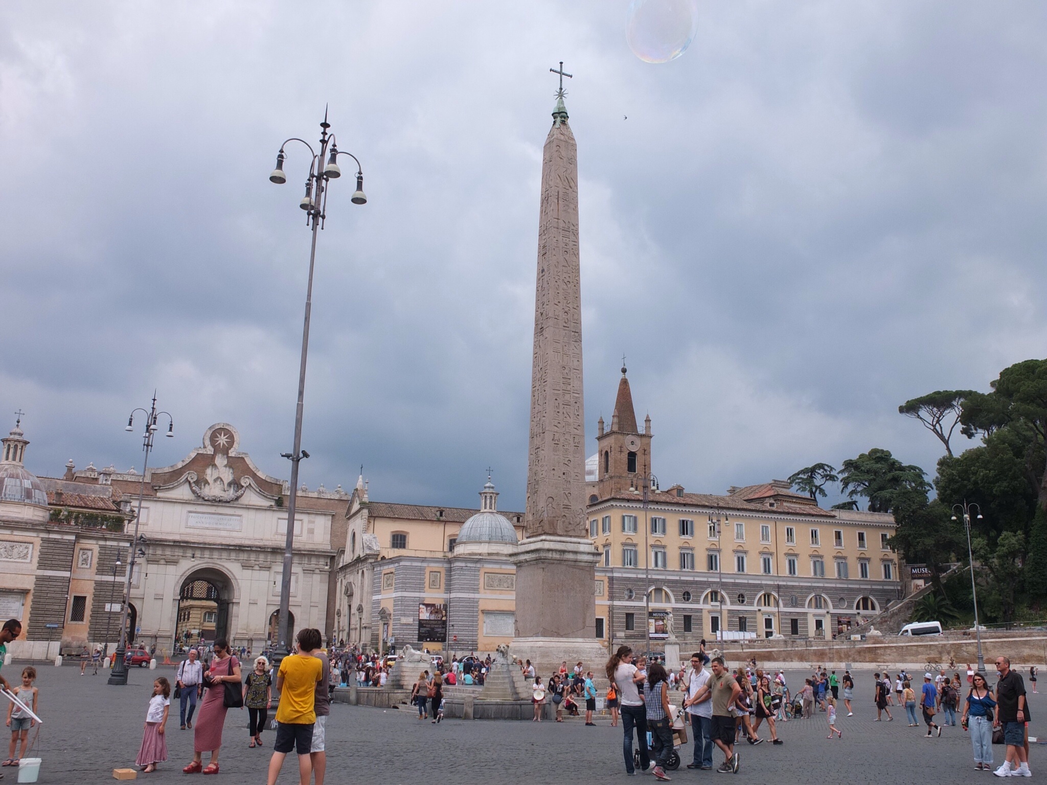 After yesterday’s historical expeditions we have a slow start and and move off, after our supplied breakfast. Our current breakfasts are being brought to us by a very cheerful young Italian woman who doesn’t speak a word of English. We decide to check out a Medici site not too far from us. The Medici family were the commerce hotshots in Florence between the 13th and 15th centuries. I’m intrigued. In order to get to the place, we have to go up the so called Spanish Steps not too far from where we are based. These steps were built between 1723 and 1725, in effect linking a Spanish embassy below to the church at the top of the stairs. At the top of the stairs is another roadway leading to the Medici villa. Once we get to the villa we suss out that the villa has been owned by the French for a long time and is being used at the moment for some obscure educational purposes. Expedition cancelled. We take some beautiful shots from the top of the Spanish stairs and then come back down the stairs and see a lost Roman soldier. Lets get a pic. We ask how much. Strange reaction. Another costumed dude appears, grabs our iphone and starts setting up for some pics. We have lost control and are are ushered into position for photos. At the end of this little charade, the hand goes out for cash. We clearly pay too much for the privilege of some quirky shots with a lost Roman soldier. Not happy. Rip off two for the trip. And we were going so well. We opt for an early brunch, and then flick into shopping mode before making our way down to the Piazza Del Popolo, the people’s square. A lot of activity here, including young families, street performers and so forth. For many centuries this square was a place of public execution, the last one being conducted in 1826. Ummm, rightoe. We wind our way back to HQ, kick back for a few hours, and then its out to dinner, again………I’m going to miss this. A pretty cruisey last day in Roma, with the exception of our little Roman soldier. Off to Santorini.