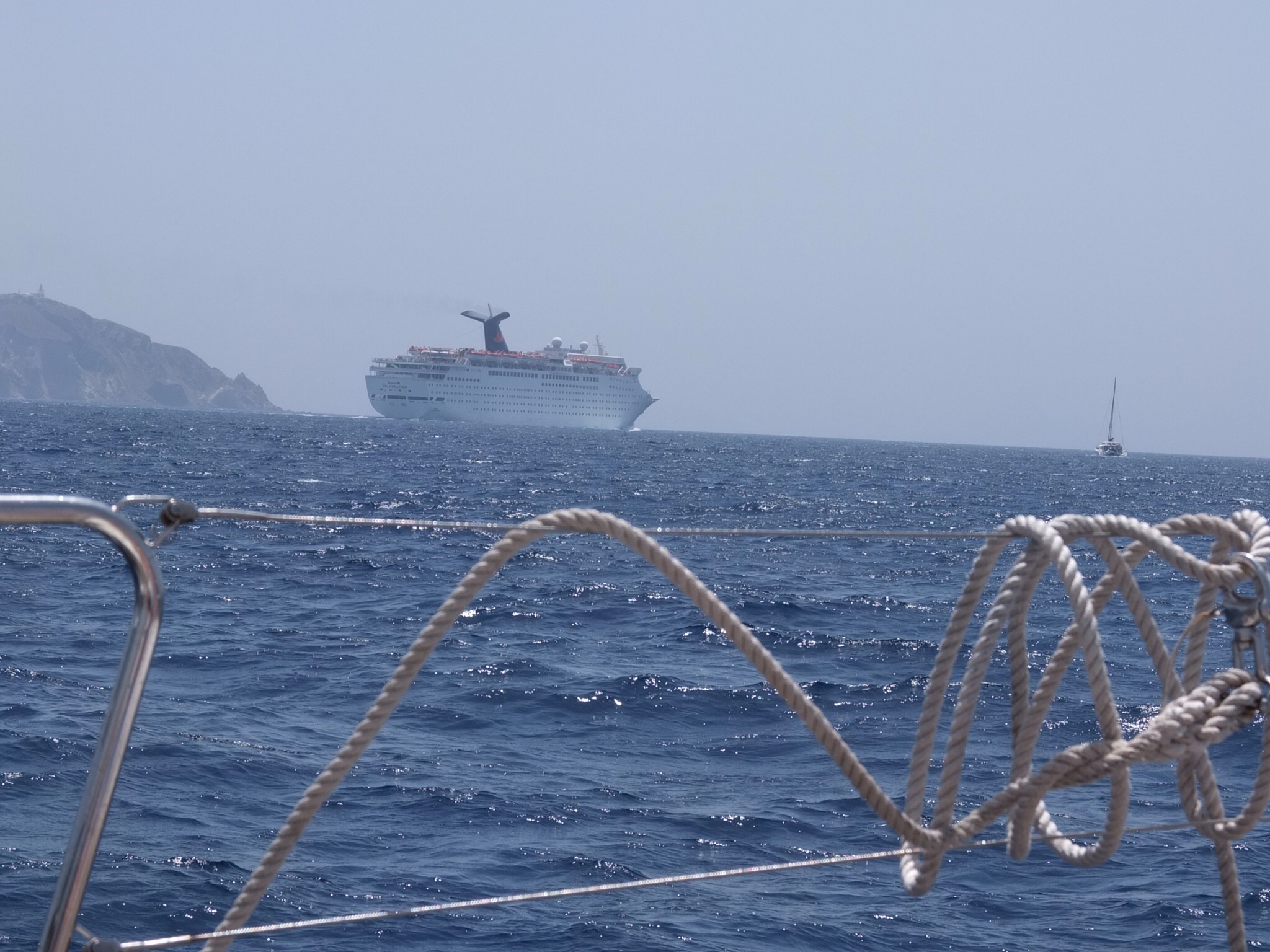 Lets see what this baby can do on the high seas. And we’re off. The plan is to cruise around the Santorini coastline stopping off for 15 min swim at the Red beach before pushing around the coastline, past the lighthouse and into the Caldera (the volcano). Yes, the volcano is under water. After a swim in the Aegean, we literally float onto the Caldera. We are over a volcano crater that was created 5000 years ago. The Tsunami that resulted from this epic event wiped out the civilisation that was on Santorini as well as the Minoans (?) as far away as Crete. Wow. We have another swim in waters that have a sulphur base and are volcanically warmed up, and then its time for lunch. As we are having lunch the boat music starts playing White Room by Cream. In actual fact, when we were in London on the Rock’n’ Roll Tour, we actually saw the building containing the White Room. A utopian moment. We chat to an American couple from the mid west. Gee they hate Obama. They don’t feel secure. The woman works as a lawyer specialising in litigation. How unusual, (not). Litigation is like a blood sport in the USA. After lunch its up with the anchor and up with the sails. We’re gonna sail back. Yeah, man. Great decision to do this little 4-5 hour cruise. A great way to see the island, from the water. Back to the port we say our goodbyes to people that we will never see again. This always seems to weird me out a little, although I do have the details of 2 couples that we could visit overseas at some point in the future.